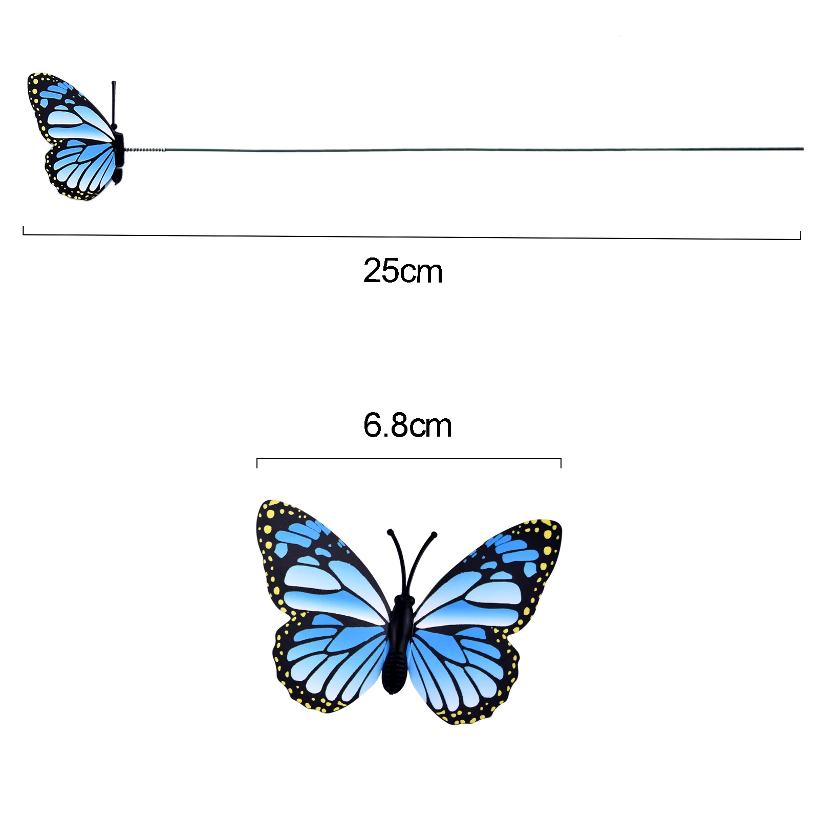 -El palo de metal se puede colocar en arbustos o en una rama, dando la ilusión de una verdadera mariposa.